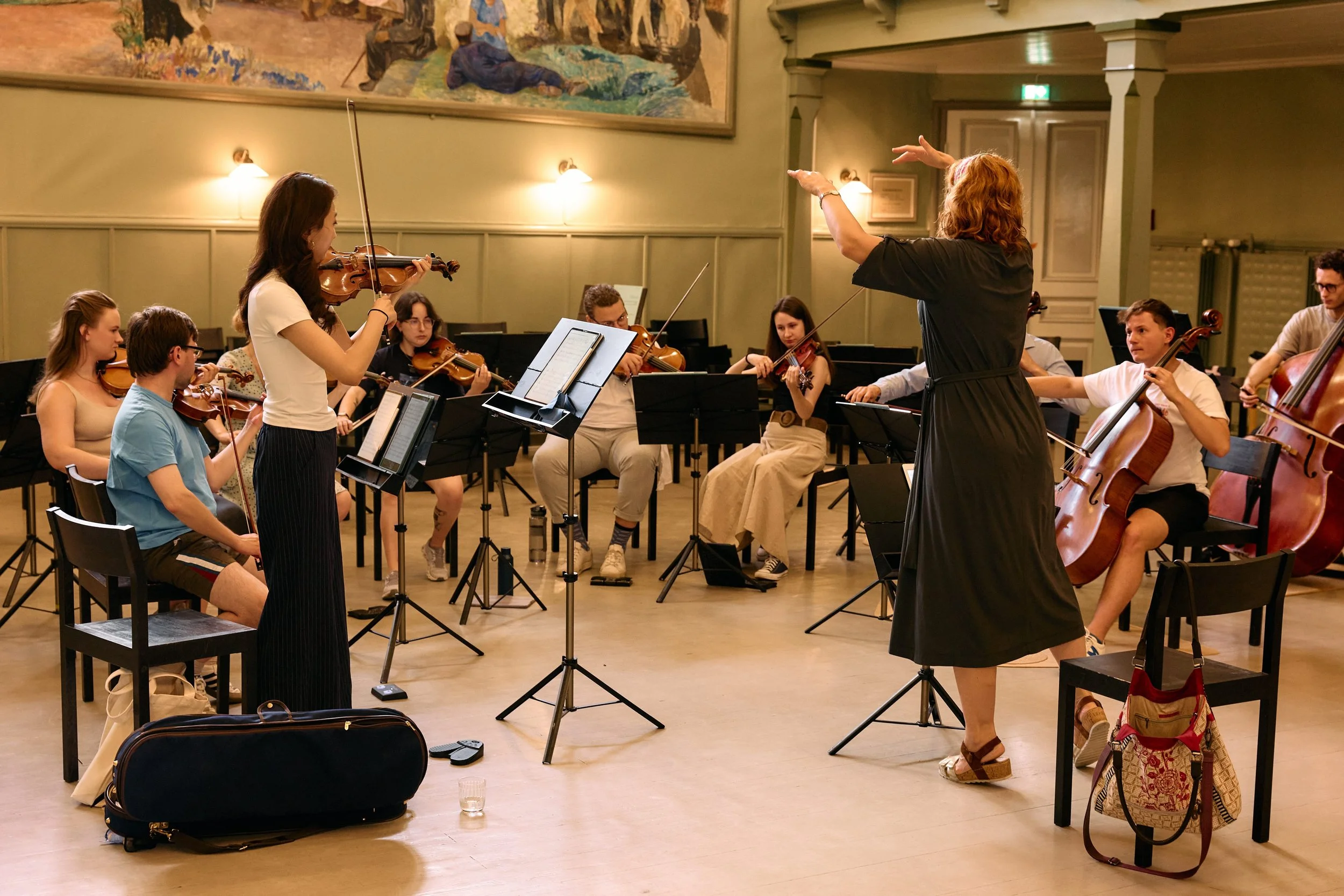 Active work with orchestra, where work is analysed, critiqued and discussed by Jukka-Pekka Saraste and guest mentors